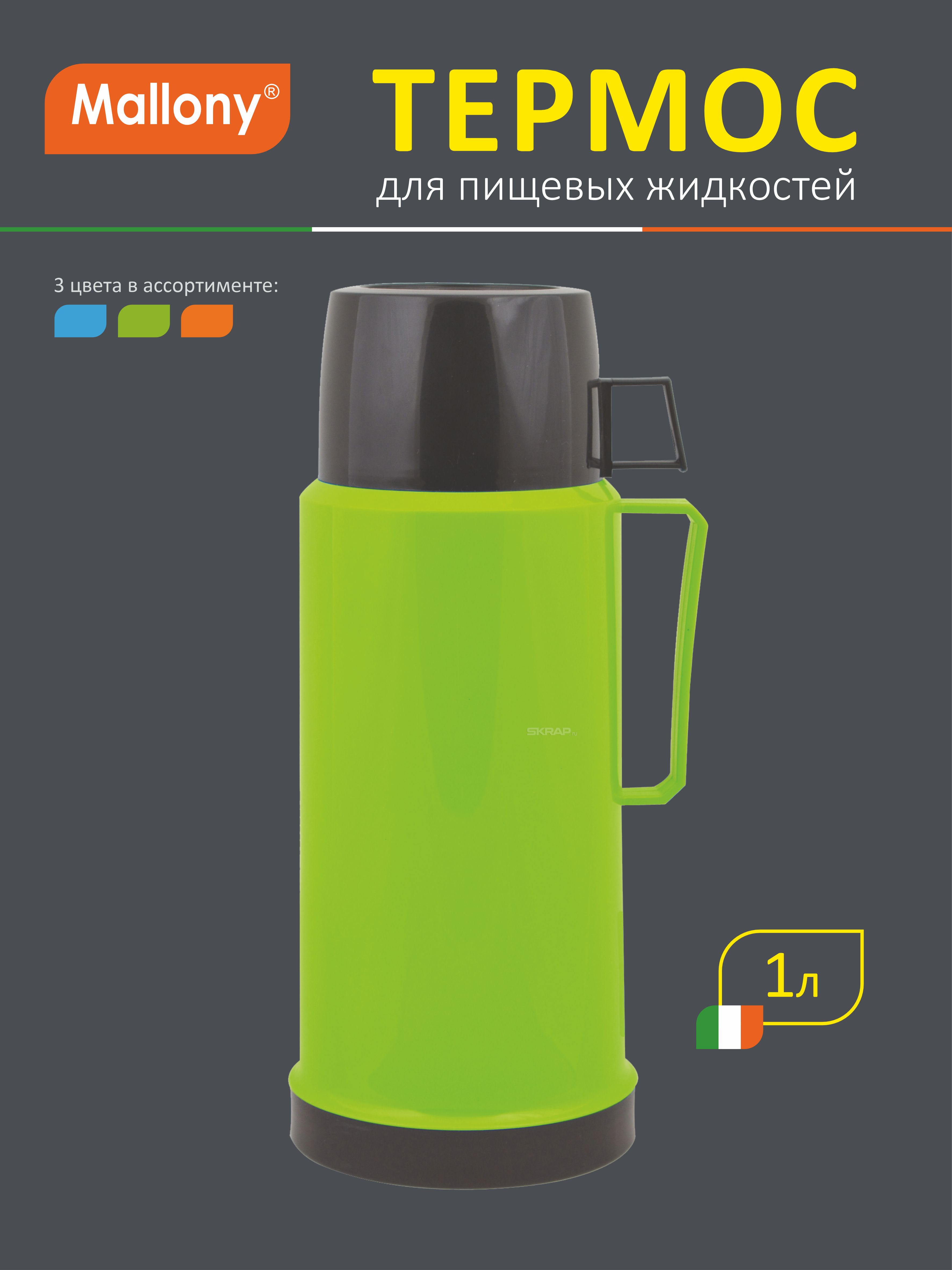 Термос в пластиковом корпусе со стеклянной колбой 2644H, 1,0 л.