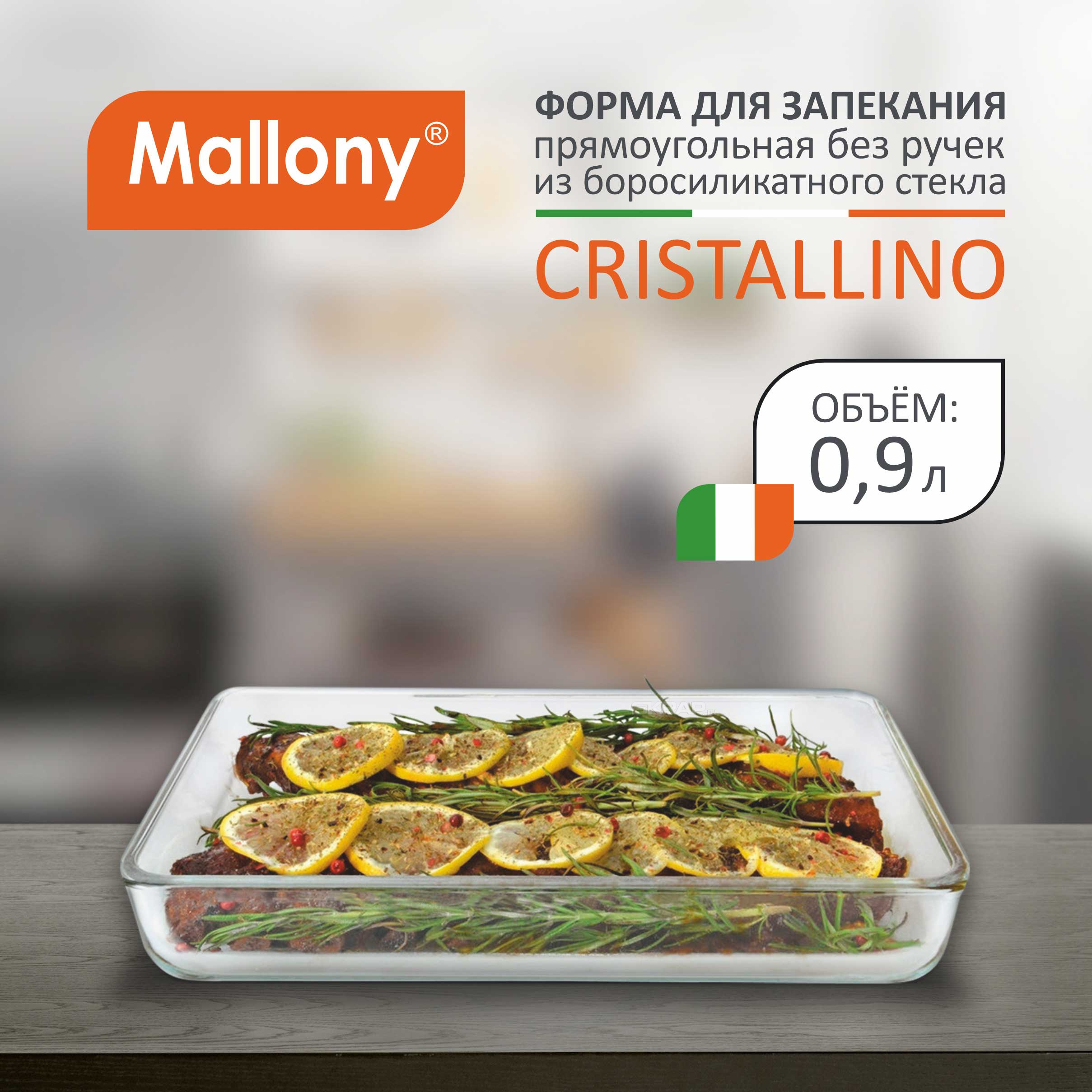 Форма для запекания из боросил стекла 0,9 л, прямоуг формы без ручек, серия Cristallino, тм Mallony
