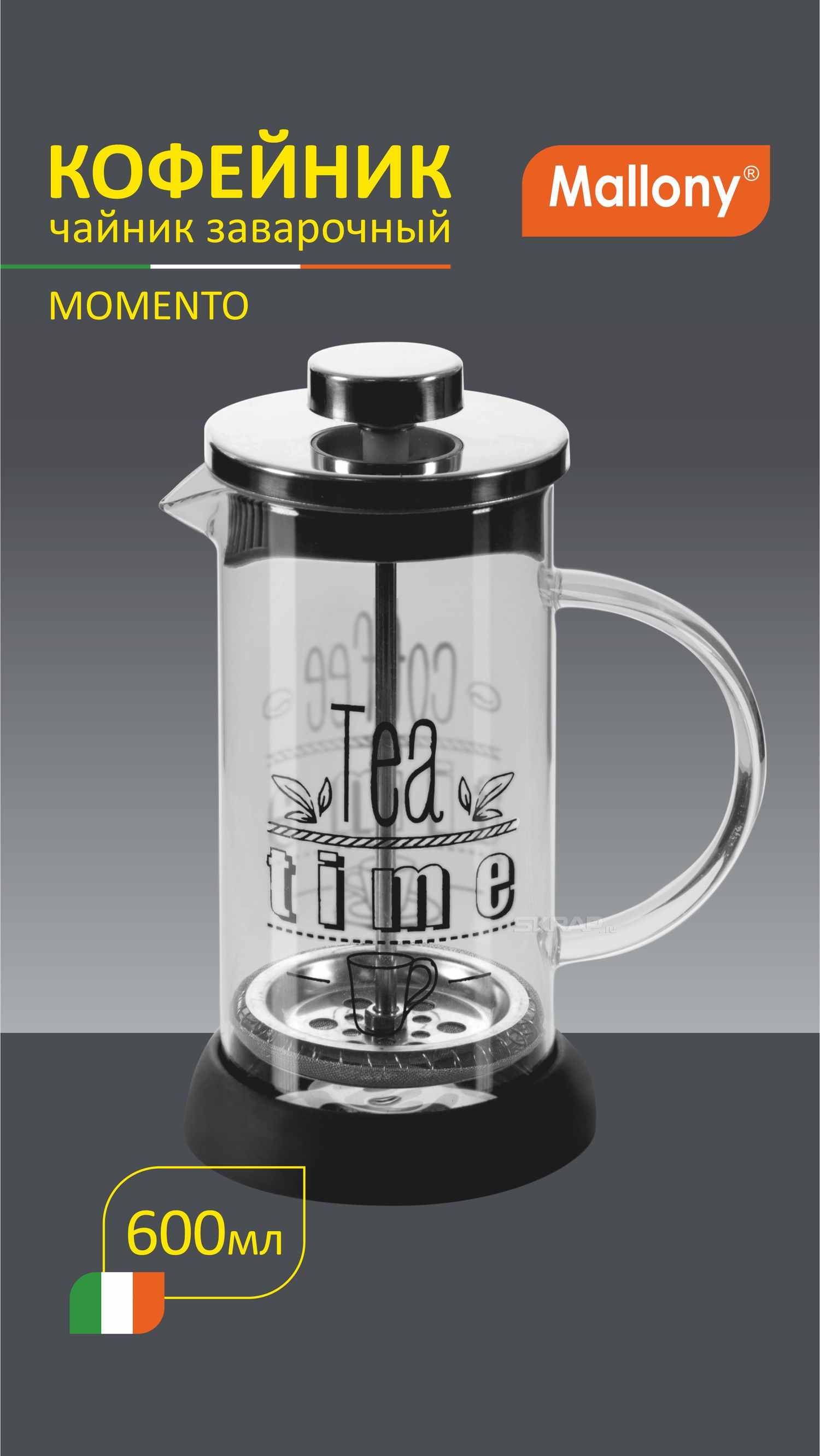 Чайник/кофейник (кофе-пресс) MOMENTO 600 мл из боросиликатного стекла с надписью на корпусе