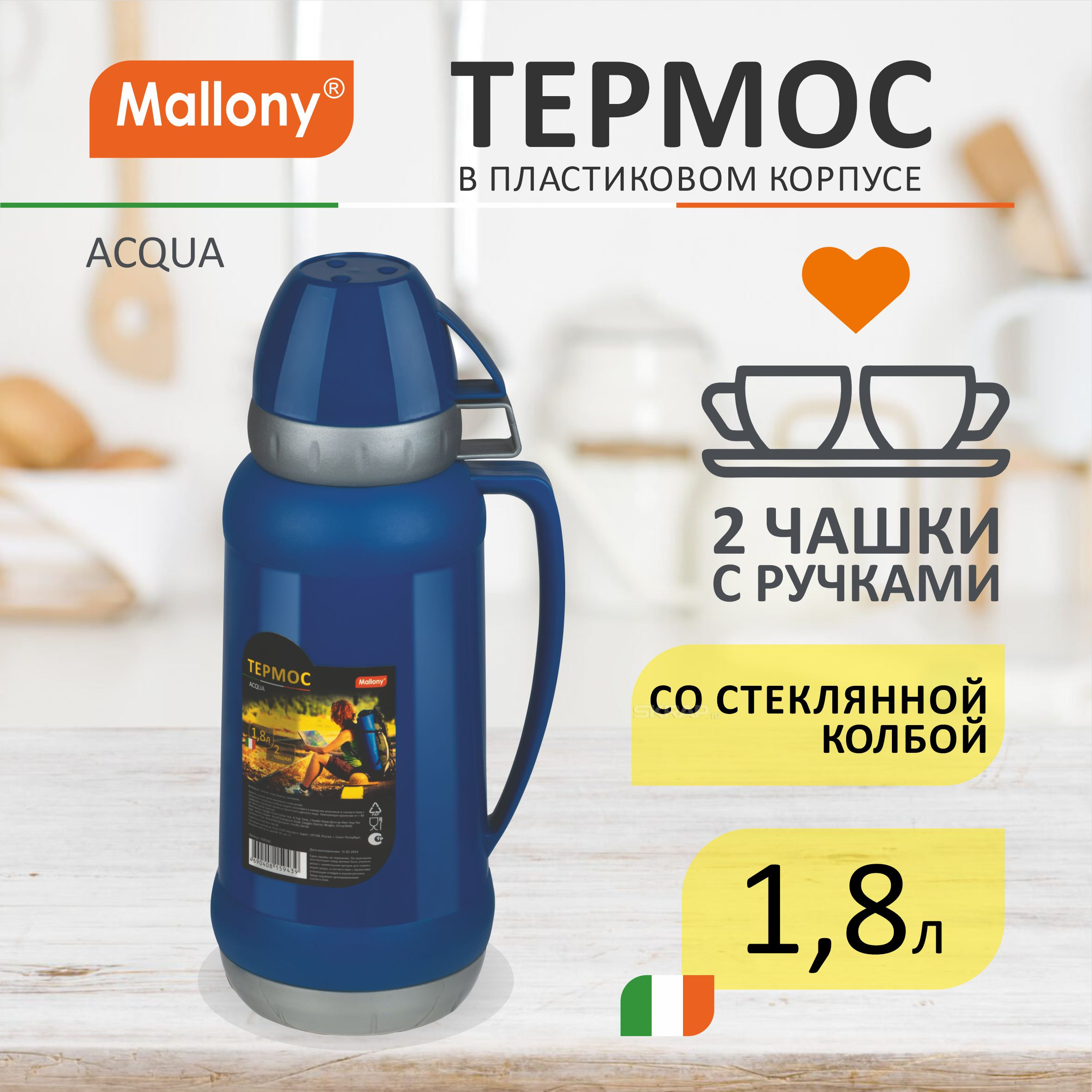 Термос в пластиковом корпусе со стеклянной колбой ACQUA, 1,8 л (2 чашки)