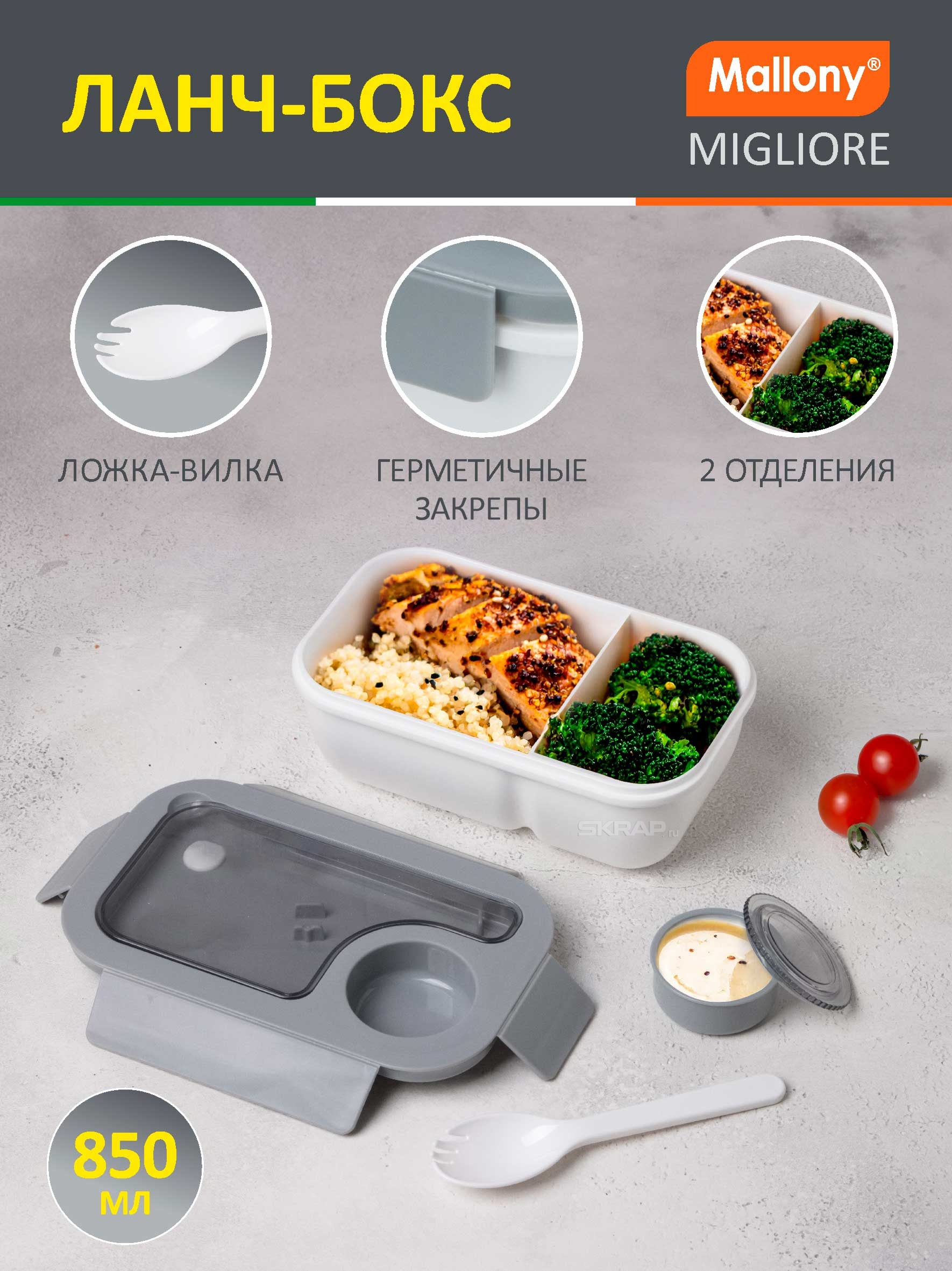 Ланч-бокс MIGLIORE, 2 отделения, 850 мл (ложка-вилка в комплекте)
