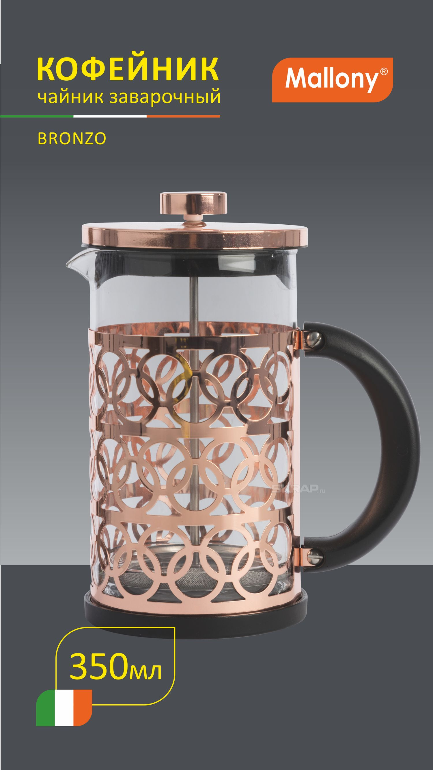 Чайник/кофейник (кофе-пресс), BRONZO, объем: 350 мл, из боросил стекла,корпус из нерж стали (медный)