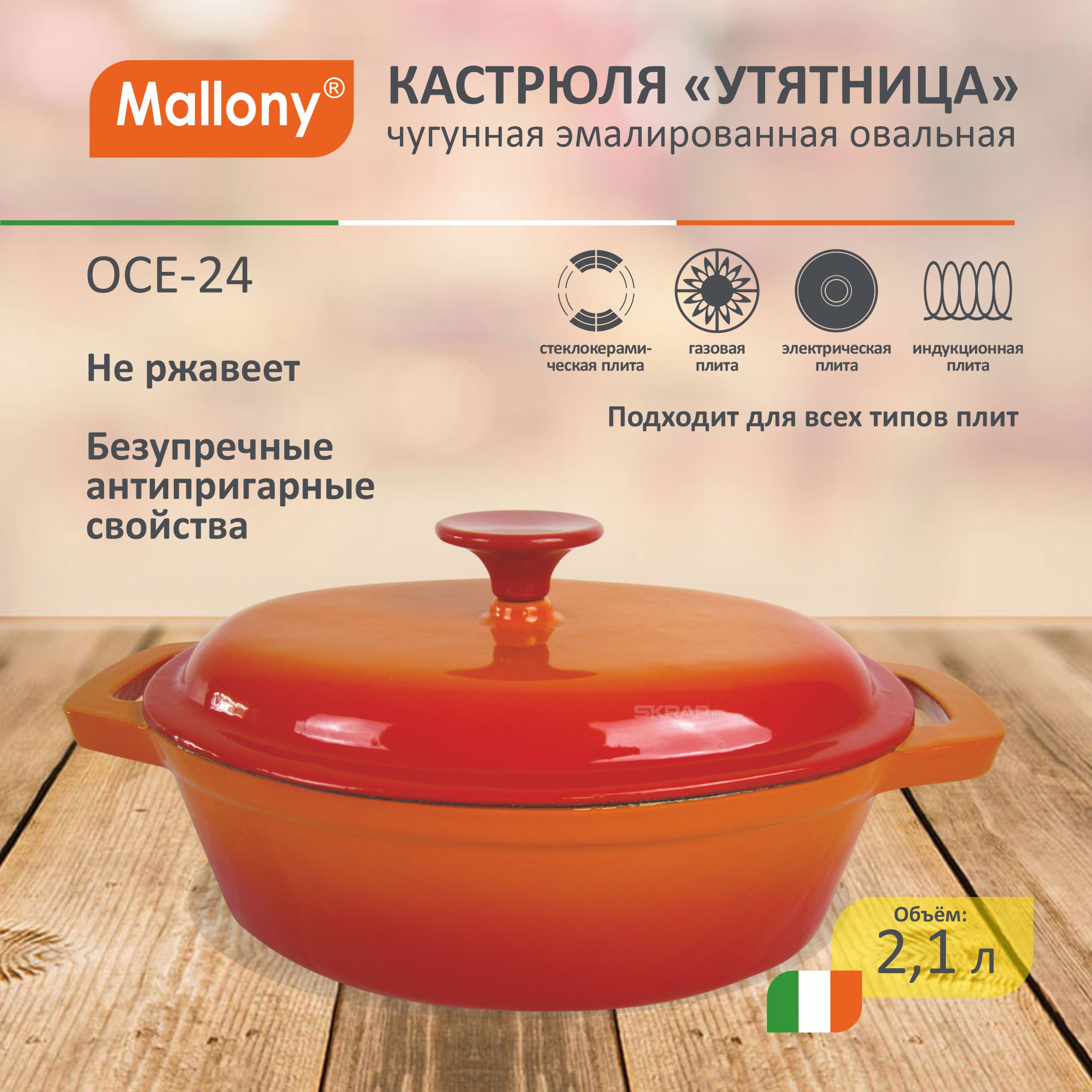 Кастрюля "УТЯТНИЦА" чугунная эмалированная овальная OCE-24, объем 2,1 л