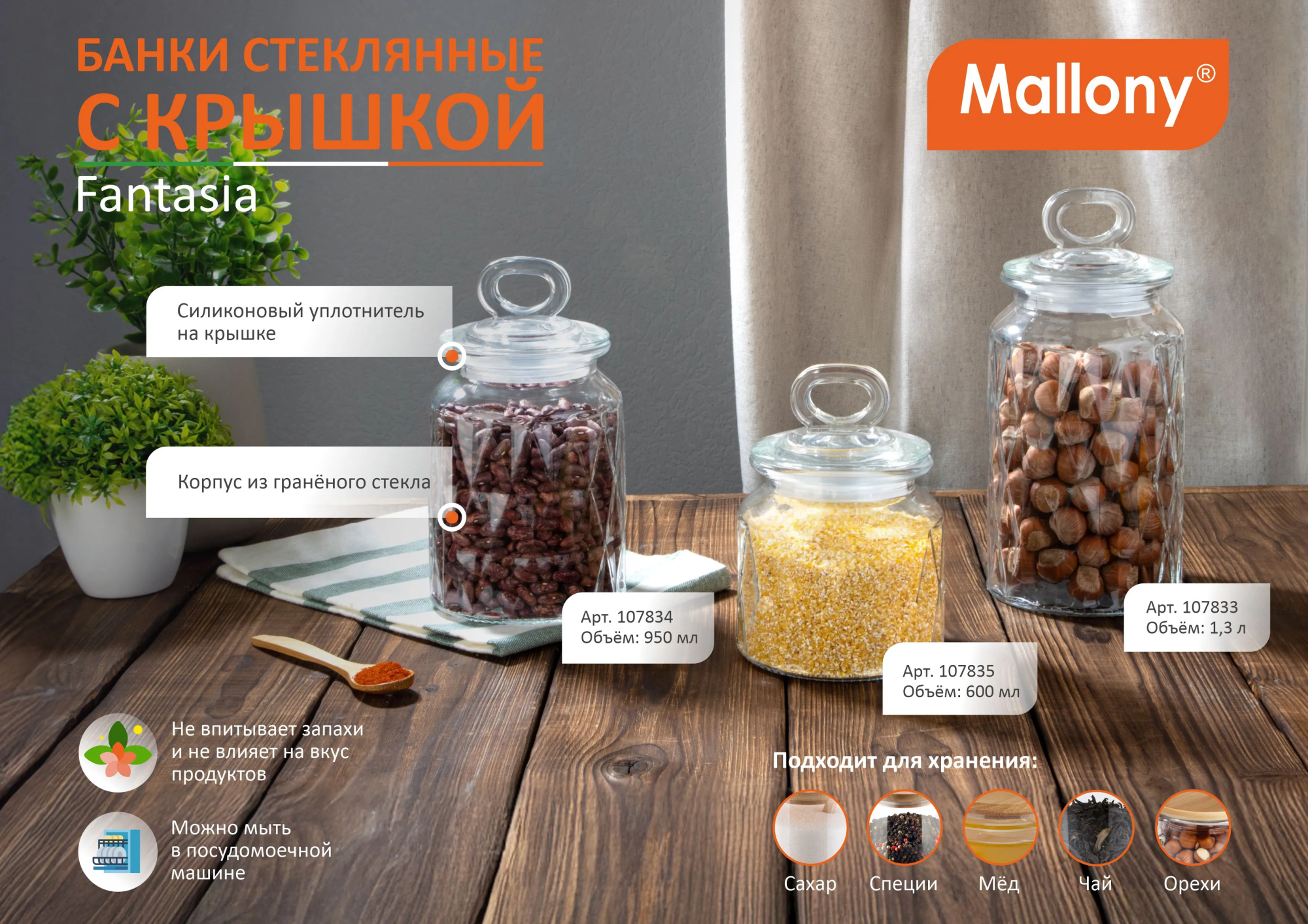 Банки стеклянные FANTASIA, для хранения сыпучих продуктов